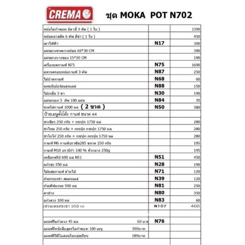 (N702) ชุดเปิดร้านขนาดกลาง ร้านกาแฟสด โมก้าพอท + แถมฟรีสูตรชง ชา กาแฟ พร้อมเปิดร้าน ในราคา 9,995.00 บาท ชุดเดียวจบสำหรับคนอยากเริ่มขายเครื่องดื่มอย่างจริงจัง จัดเต็มอุปกรณ์ “ตามรายการในภาพทุกชิ้น” ของพร้อมส่ง ไม่ต้องรอ สั่งวันนี้ส่งเช้าวันถัดไป รับไปก็เตรียมเปิดขายได้ทันที