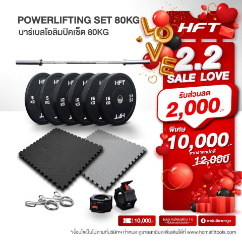POWERLIFTING Set 80KG. ชุดบาร์เบลโอลิมปิค 2.2 m พร้อมแผ่นน้ำหนัก Bumper รวม 60 KG และแผ่นยาง EVA 2 แผ่น จาก Homefittools ครบจบในชุดเดียว เหมาะสำหรับสายยกหนัก Powerlifting และ Crossfit ที่ต้องการอุปกรณ์มาตรฐานซ้อมท่าหลักได้จริงที่บ้านหรือยิม