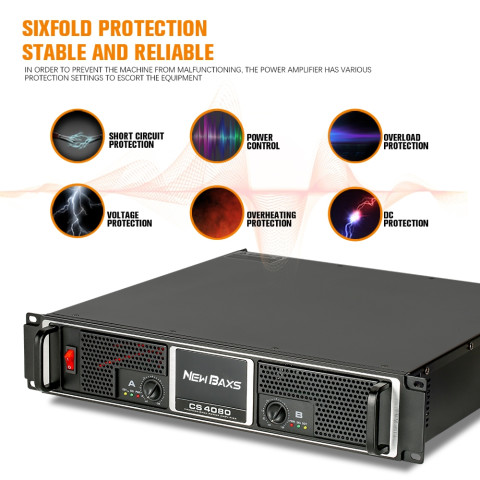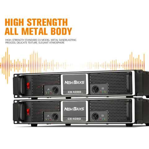 NEW BAXS CS4080 เครื่องขยายเสียงระดับมืออาชีพ 2 แชนแนล พลังขับหนักแน่นสำหรับงานเวที KTV และสถานบันเทิง ให้เสียงดังชัด คุมรายละเอียดได้ดี พร้อมโครงสร้างโลหะทั้งตัวและระบบป้องกันครบ เหมาะทั้งงานติดตั้งถาวรและงานเคลื่อนย้าย