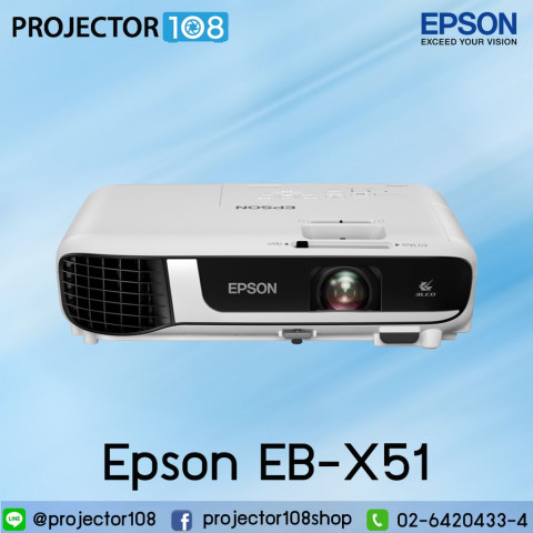 Epson EB-X51 โปรเจคเตอร์ 3LCD ความสว่าง 3800 Lumens ความละเอียด XGA คมชัด สว่างสดใส เหมาะทั้งห้องเรียน ห้องประชุม และใช้งานภายในบ้าน ให้ภาพสีสันเป็นธรรมชาติด้วยเทคโนโลยี 3LCD พร้อมคอนทราสต์สูง 16,000:1 ช่วยให้ตัวหนังสือและกราฟอ่านง่าย แม้ในห้องที่มีแสงรบกวน