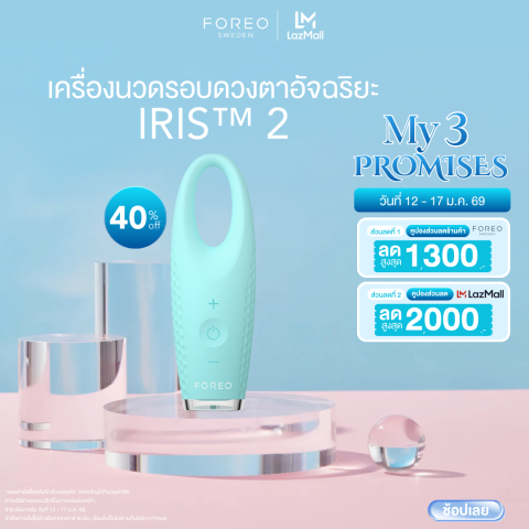 เติมความสดชื่นให้ดวงตาทุกวันด้วย FOREO IRIS 2 สี Mint สัมผัสการนวดที่อ่อนโยนแต่ทรงพลัง เพื่อรอบดวงตาที่ดูแน่น กระจ่างใส และพร้อมเผชิญทุกวันอย่างมั่นใจ