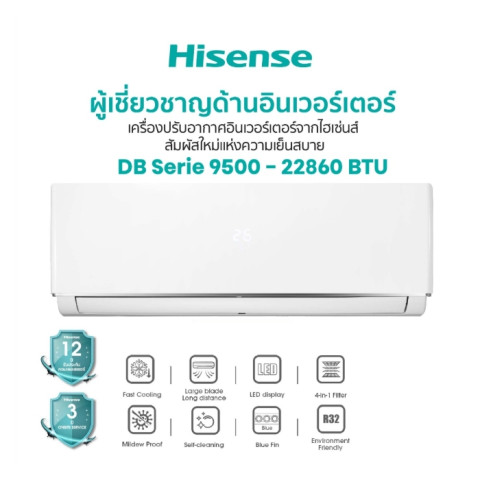 [พร้อมส่ง] Hisense เครื่องปรับอากาศติดผนัง CE/KC/DB Series ระบบ Inverter 9,500–23,500 BTU (สเปคที่เลือก: 22,860 BTU) **ไม่มีบริการติดตั้ง**