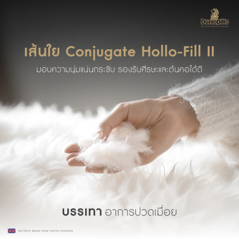 นุ่มฟู แต่ไม่ยวบ ผลิตจากใยสังเคราะห์ Conjugate Hollow-Fill II ให้สัมผัสนุ่มสบาย รองรับศีรษะและลำคอได้พอดี