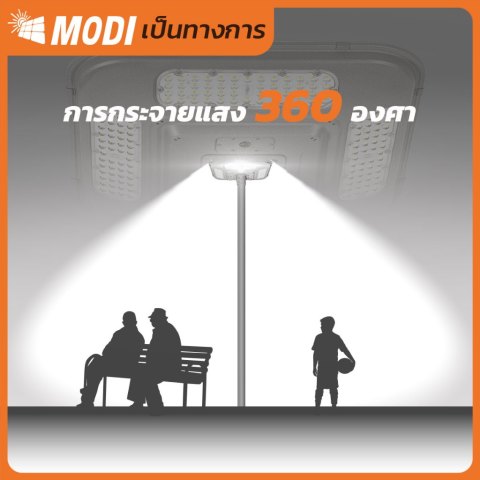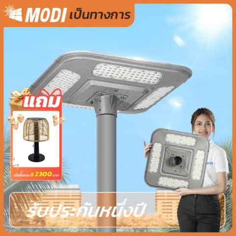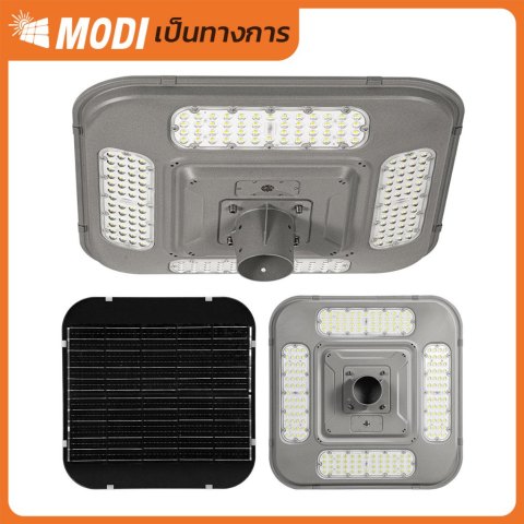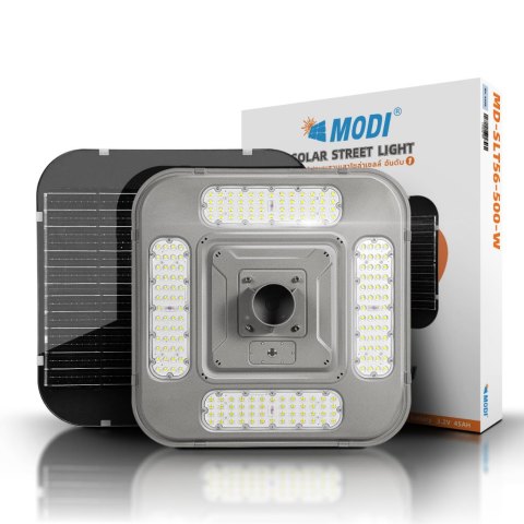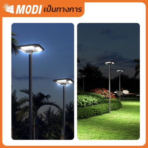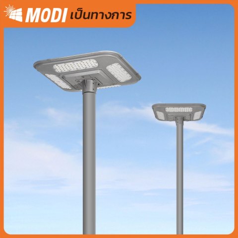 MODI โคมไฟถนนสวมเสาโซล่าเซลล์ 500W แสงขาว (6500K) โคมไฟพลังงานแสงอาทิตย์สำหรับส่องสว่างภายนอก ติดตั้งง่ายแบบสวมเสา ให้ความสว่างสูงถึง 4500 ลูเมน พร้อมระบบ สมาร์ทไวแสง เปิดไฟอัตโนมัติเมื่อแสงเริ่มมืด เหมาะสำหรับพื้นที่กลางแจ้งที่ต้องการความสว่างต่อเนื่อง โดยไม่ต้องเดินสายไฟ