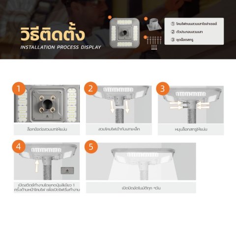 คำแนะนำการติดตั้ง: ควรติดตั้งสูงจากพื้นประมาณ 3-6 เมตร เพื่อให้แสงกระจายได้ทั่วถึงและได้ทิศทางแสงที่มีประสิทธิภาพ