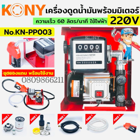 KONY เครื่องดูดน้ำมัน/ปั๊มดูดน้ำมันไฟฟ้า 220V รุ่น PP003 ครบชุดพร้อมใช้งาน สำหรับงานถ่ายเทน้ำมันในฟาร์ม หน้างาน หรือโรงงาน ด้วยปั๊มแรงสูงกำลังเต็ม ใช้งานสะดวกแบบเคลื่อนที่ ช่วยประหยัดเวลาในการเติม-ดูด-จ่ายน้ำมัน พร้อมอุปกรณ์เสริมที่จำเป็นมาให้ครบ ไม่ต้องซื้อเพิ่ม
