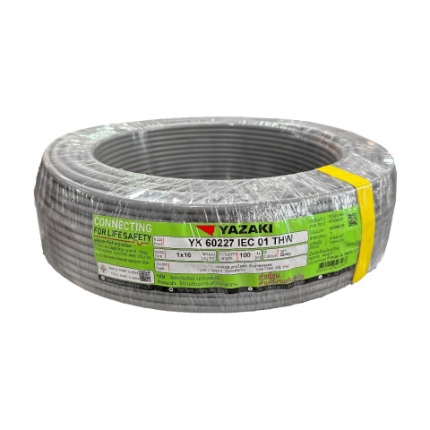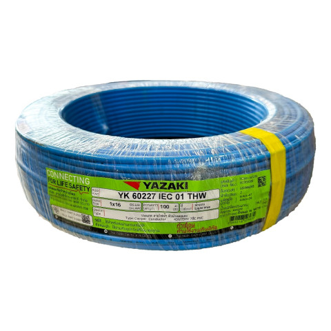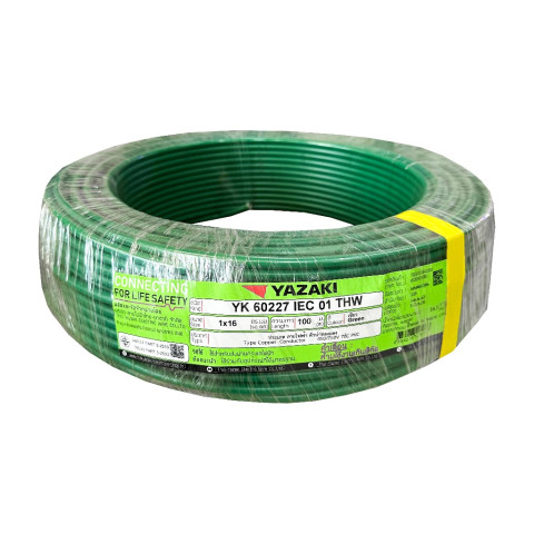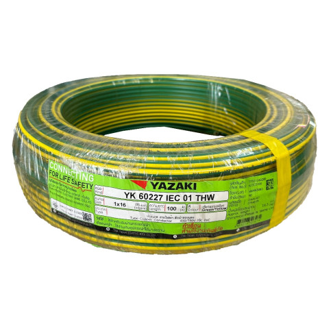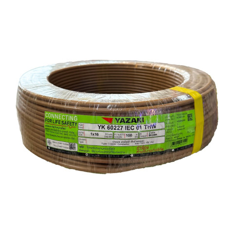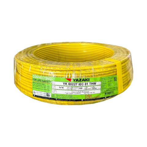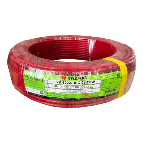 YAZAKI สายไฟทองแดง THW 1x16 sq.mm (ม้วน 100 เมตร) มาตรฐาน 60227 IEC 01 (THW) สำหรับงานเดินสายไฟภายในอาคาร ให้การนำไฟฟ้าดี ทนทาน เหมาะกับงานติดตั้งระบบไฟฟ้าทั่วไปทั้งบ้าน อาคารพาณิชย์ และงานระบบที่ต้องการความมั่นใจในคุณภาพจากแบรนด์ YAZAKI