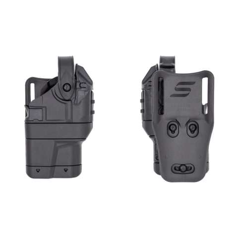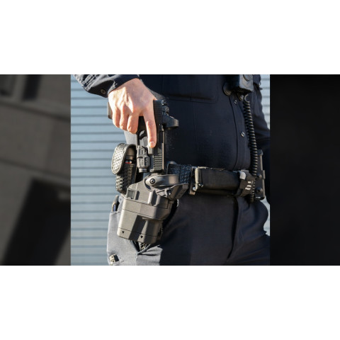 ด้วยรูปทรงแบบ Minimalist Footprint ช่วยใช้พื้นที่บนเข็มขัดได้คุ้มค่า ทำให้เจ้าหน้าที่สามารถพกพาปืนขนาด Full-Size ได้โดยไม่กินพื้นที่อุปกรณ์อื่นบนสายรัด อีกทั้งยังเสริมความปลอดภัยด้วยกลไกล็อกที่ได้รับการปกป้องภายใน และคันปลดล็อก ALS แบบผิวสัมผัส ช่วยให้วางนิ้วโป้งได้มั่นคง จับถนัดมือ และดึงปืนได้ลื่นไหลเป็นธรรมชาติ