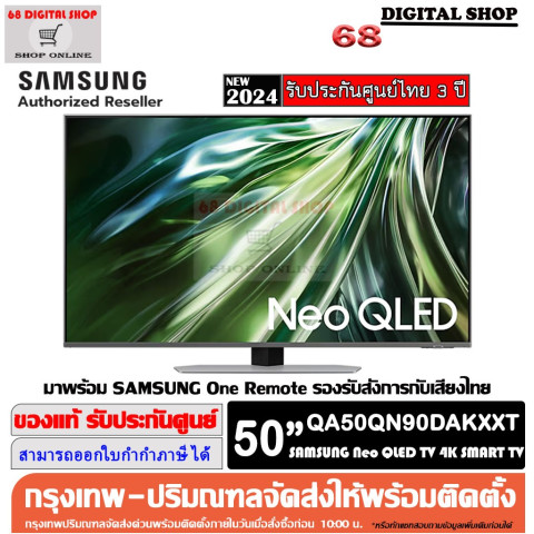 Samsung Neo QLED TV 50QN90D ทีวี 4K Smart TV ขนาด 50 นิ้ว รุ่น QA50QN90DAKXXT ที่ยกระดับความคมชัด สีสัน และความลื่นไหลสำหรับทั้งการดูหนัง-กีฬา-สตรีมมิง และการเล่นเกม ด้วยเทคโนโลยี Neo QLED พร้อมหน่วยประมวลผล AI รุ่นใหม่ ให้ภาพสวยคม รายละเอียดชัดทั้งฉากมืดและสว่าง พร้อมประสบการณ์เกมระดับ 4K 144Hz ที่ไหลลื่นตอบสนองไว