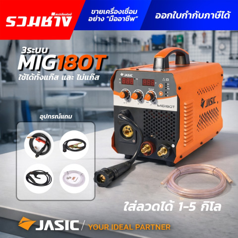 JASIC เครื่องเชื่อม 3 ระบบ MIG180T (MIG/MMA/LIFT TIG) เครื่องเดียวจบทั้งงานเชื่อมลวด เชื่อมธูป และ TIG แบบ LIFT เหมาะสำหรับงานซ่อมบำรุง งานโครงเหล็ก งานสแตนเลส/เหล็กทั่วไป ใช้งานได้ทั้ง แบบใช้แก๊สและไม่ใช้แก๊ส รองรับม้วนลวด 1–5 กก. ให้การอาร์คติดง่าย แนวเชื่อมสวย ควบคุมบ่อหลอมได้ดี พร้อม รับประกัน 2 ปี
