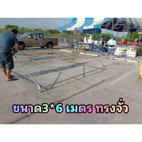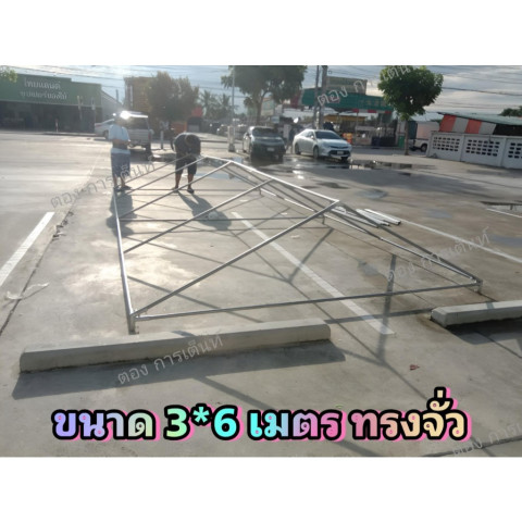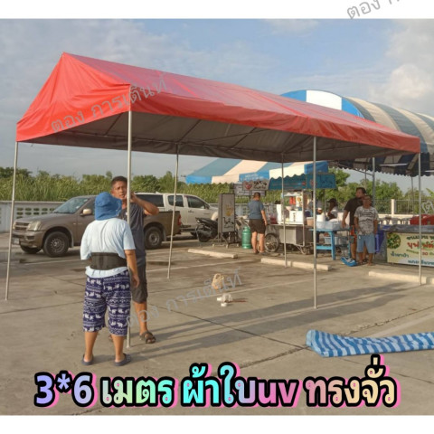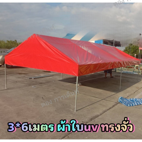 ขนาดเต็นท์: 3 x 6 เมตร ทรงจั่ว โปร่งโล่ง ระบายอากาศดี