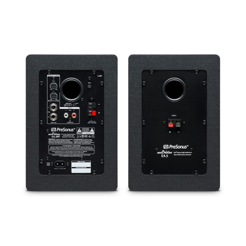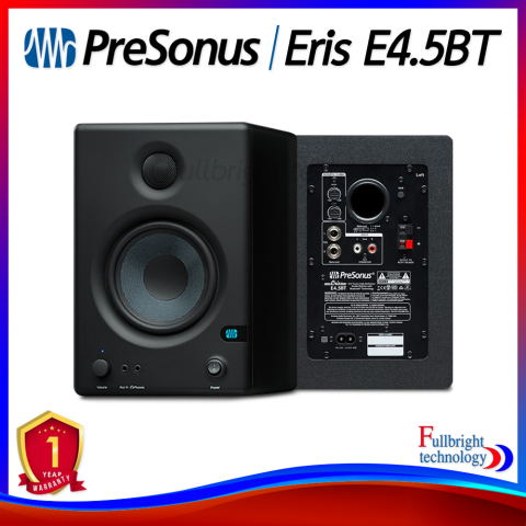 Presonus Eris E4.5BT (Pair/ต่อคู่) ลำโพงมอนิเตอร์สตูดิโอแบบแอคทีฟขนาด 4.5 นิ้ว พร้อมการเชื่อมต่อ Bluetooth ให้คุณฟังเพลง ทำงานมิกซ์เสียง ตัดต่อวิดีโอ หรือใช้งานโฮมสตูดิโอได้สะดวกยิ่งขึ้น ด้วยโทนเสียงที่เที่ยงตรง รายละเอียดชัด และย่านต่ำกระชับจาก Woven Composite Woofer เหมาะทั้งงานจริงจังและความบันเทิงในชีวิตประจำวัน