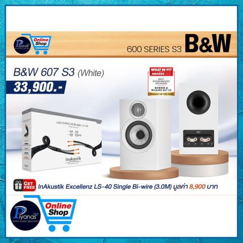Bowers&Wilkins (B&W) 607 S3 ลำโพงบุ๊คเชล์ฟคุณภาพระดับไฮเอนด์สำหรับคนรักเสียงเพลงและโฮมเธียเตอร์ มอบรายละเอียดเสียงที่คมชัด เวทีเสียงโปร่งเป็นธรรมชาติ และเบสกระชับเกินตัว เหมาะทั้งการฟังเพลงจริงจังและใช้เป็นลำโพงคู่หน้าสำหรับดูหนังในพื้นที่ห้องขนาดเล็กถึงกลาง ดีไซน์เรียบหรูเข้ากับทุกสไตล์การแต่งบ้าน พร้อมตัวเลือกสี BLACK / WHITE / RED CHERRY / OAK จาก Piyanas Electric (ปิยะนัส อิเล็คทริคส์)