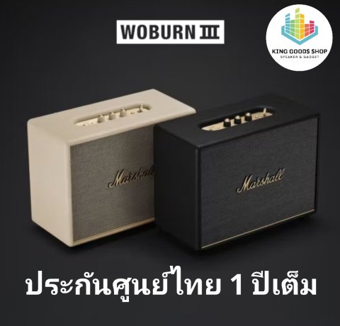 New Marshall Woburn (Gen3/รุ่นใหญ่) ลำโพงบลูทูธพลังเสียงระดับเรือธง จาก King Good Shop ในราคาโปรเทศกาล 23,900 บาท ให้เสียง หนักแน่น คมชัด ฟังสนุก เบสลงลึก กระหึ่มเต็มห้อง เหมาะทั้งฟังเพลง ดูหนัง และใช้งานในพื้นที่กว้าง ด้วยดีไซน์คลาสสิกสไตล์แอมป์กีตาร์เอกลักษณ์ Marshall ตั้งวางแล้วโดดเด่นทุกมุมบ้าน