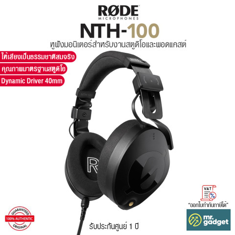 Rode NTH-100 หูฟังมอนิเตอร์คุณภาพสูงระดับสตูดิโอแบบครอบหู (Closed-Back Over-Ear) สีดำ ให้เสียงที่เป็นธรรมชาติ เที่ยงตรง ไม่แต่งโทน เหมาะสำหรับงานมิกซ์เสียง ทำวิดีโอ อัดเสียง พอดแคสต์ ไลฟ์สด หรือใช้งานภาคสนามที่ต้องการความแม่นยำและการแยกเสียงรบกวนที่ดี พร้อมโครงสร้างแข็งแรงแบบโมดูลาร์ ใช้งานได้ยาวนาน และดูแลรักษา/เปลี่ยนชิ้นส่วนได้สะดวก