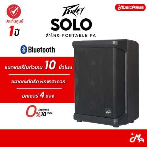 Peavey SOLO Portable PA ลำโพงพกพาระดับโปรที่ให้ทั้งความสะดวกและคุณภาพเสียงแบบมืออาชีพ เหมาะสำหรับนักดนตรี งานประชาสัมพันธ์ อีเวนต์กลางแจ้ง ไปจนถึงกิจกรรมส่วนตัว ใช้งานง่าย พกพาคล่อง พร้อมมิกเซอร์ในตัวและแบตเตอรี่ลิเธียมใช้งานได้ยาวนาน