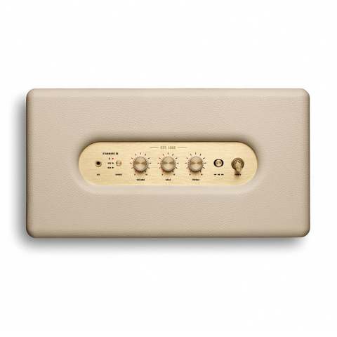 งานออกแบบโดดเด่นด้วยโลโก้สคริปต์ Marshall และปุ่มควบคุมโทนทองเหลือง ให้ลุคเรียบเท่แต่สะกดสายตา เลือกสีได้ตามสไตล์: ดำคลาสสิก, ครีมวินเทจ หรือ น้ำตาลโทนผ่อนคลาย