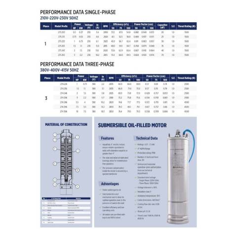 120AY10E5 — ใบพัด 5 ใบ, ปากออก 2", Head Max 29 ม., IP68