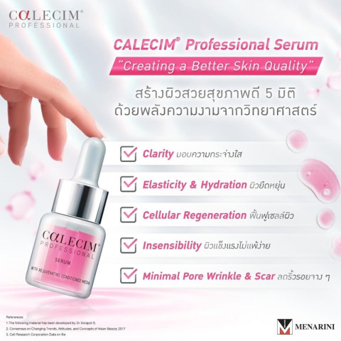 Calecim Professional Serum ได้รับการพัฒนาโดยนักวิทยาศาสตร์และเป็นที่ไว้วางใจของแพทย์ ช่วยปลอบประโลมผิวที่อ่อนแอ ลดอาการแดง บวม แสบร้อน และช่วยให้ผิวกลับมาดูแข็งแรง เรียบเนียน และฉ่ำโกลว์ได้ไวขึ้นหลังทำทรีทเมนต์ต่างๆ