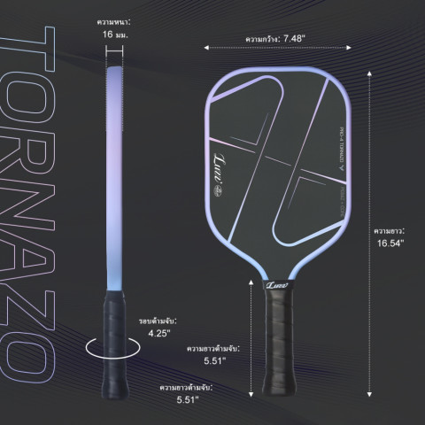 Luzz Pickleball Paddle Pro 4 Tornazo ไม้พิคเคิลบอลระดับโปรที่เกิดมาเพื่อ “บิดเกมให้เป็นต่อ” ด้วยดีไซน์ดุดันและเทคโนโลยีแกนยืดหยุ่น สองชั้น ผสานพื้นผิว คาร์บอนไฟเบอร์ถักทอขั้นสูง ให้สัมผัสการตีที่มั่นคง คมชัด และทรงพลังในทุกช็อต ไม่ว่าคุณจะเร่งสปีดเกมที่หน้าเน็ต หรือคุมจังหวะจากท้ายคอร์ต Tornazo ช่วยให้คุณคอนโทรลได้เหนือกว่า พร้อมความทนทานสำหรับการใช้งานหนักอย่างต่อเนื่อง