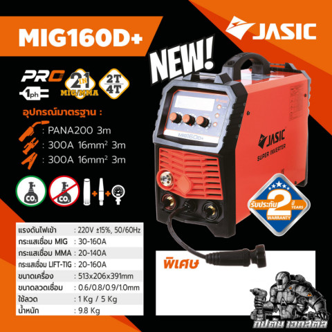 (ถูกสุด) JASIC ตู้เชื่อม 3ระบบ MIG160D+ / MIG200D+ เครื่องเชื่อม MIG/MMA/Lift TIG (MIG160) ประกัน 2+2 ราคา 18,990.00 บาท