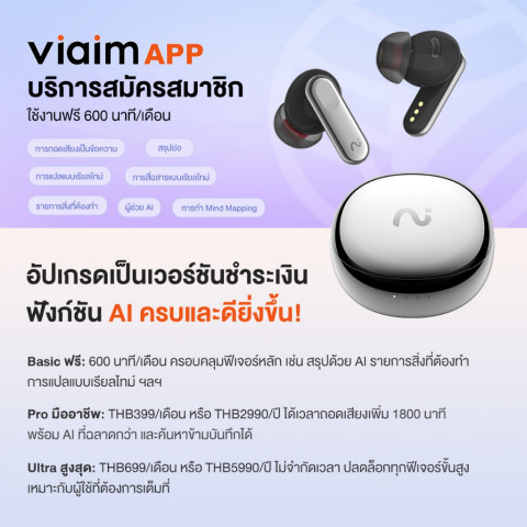 VIAIM AI หูฟังอัจฉริยะ Air/Nano+ (นาโน+ สีเงิน) หูฟังนักแปล “3-in-1” ที่รวม แปลภาษาแบบเรียลไทม์ + บันทึกเสียงประชุม + สรุปงานอัตโนมัติ ไว้ในคู่เดียว ใช้งานได้ทั้ง iOS & Android พร้อม ส่งฟรี และ รับประกัน 1 ปี ให้คุณสื่อสาร ทำงาน และเดินทางได้มั่นใจกว่าเดิม ในราคา 5,319.30 บาท