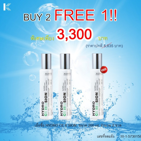 โปรซื้อ 2 แถม 1 คุ้มกว่าที่เคยกับ SOL HYDRO CE II SION 200 ml. สเปรย์น้ำแร่พลังงานนาโนผสาน ทองคำ เงิน และอัญมณีธรรมชาติ เพื่อเติมความชุ่มชื้นและปลุกผิวให้ดูสดใส เปล่งปลั่งในทุกช่วงเวลาของวัน เหมาะกับทุกสภาพผิว แม้ผิวที่ต้องการการดูแลเป็นพิเศษ
