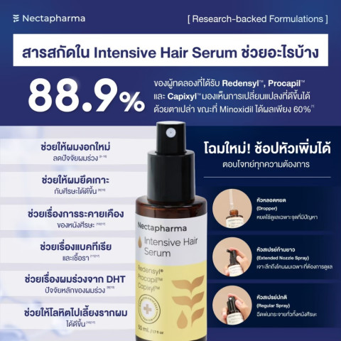 [2 ขวด] Intensive Hair Serum เซรั่มลดผมร่วง ผมบาง เพิ่มผมใหม่ จาก Nectapharma ใส่ Redensyl Procapil Capixyl
