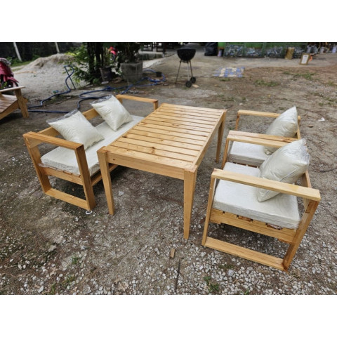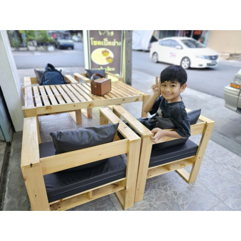 ชุดโต๊ะรับแขกนั่งชิล ไม้สนแท้ ขนาด 70×120×60 ซม. พร้อมเก้าอี้อาร์มแชร์ เหมาะทั้งจัดมุมพักผ่อนที่บ้านและใช้งานเชิงพาณิชย์ในร้านคาเฟ่/ร้านอาหาร เพิ่มบรรยากาศอบอุ่นสไตล์ไม้จริง พร้อมความแข็งแรงมั่นคง งานทำสีและเคลือบเงาทั้งชุด ดูสวยเรียบหรู ทำความสะอาดง่าย