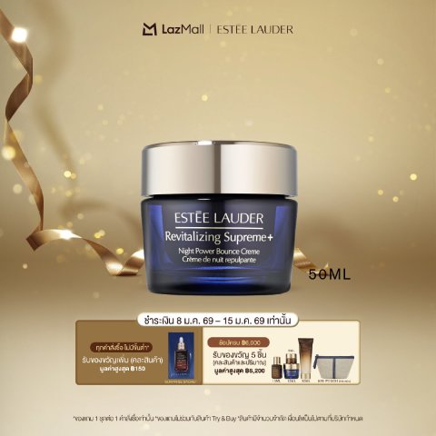 เอสเต ลอเดอร์ [New] Estee Lauder Revitalizing Supreme+ Night Power Bounce Creme 50ml มอยส์เจอไรเซอร์กลางคืนแบบมัลติแอ็กชัน เพื่อผิวที่ดูกระชับ เรียบเนียน และอ่อนเยาว์ยามตื่นนอน เนื้อครีมเนียนนุ่มดุจแพรไหม เข้มข้นแต่ซึมไว ให้ความรู้สึกเบาสบาย ไม่หนักผิว เติมความชุ่มชื้นทันที พร้อมปลุกพลัง “ผิวเด้งดึ๋ง” ให้ดูมีชีวิตชีวาข้ามคืน
