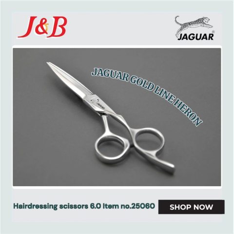 กรรไกรตัดผม JAGUAR GOLD LINE Heron 6.0 (Item no.25060) กรรไกรระดับมืออาชีพจากเยอรมนี โดดเด่นด้วยความคม ระดับ 4 ดาว ให้การตัดลื่นไหล ควบคุมทรงได้แม่นยำ เหมาะทั้งงานซอย งานตัดทั่วไป และงานที่ต้องการความเนียนของแนวเส้นตัด พร้อมดีไซน์ด้ามจับแบบ Crane ช่วยลดความเมื่อยล้าข้อมือเมื่อใช้งานต่อเนื่อง