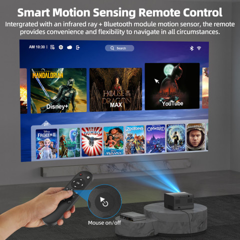 GOOJODOQ 1080P FHD Smart Projector โปรเจคเตอร์อัจฉริยะความละเอียดคมชัดระดับ Full HD 1080P ที่ออกแบบมาเพื่อยกระดับการดูหนัง เล่นเกม หรือพรีเซนต์งานให้เต็มอรรถรส มาพร้อม ลำโพงคู่ (Dual Speakers) ให้เสียงดังชัด เติมบรรยากาศความบันเทิงได้ทันที และ รีโมทตรวจจับการเคลื่อนไหว (Motion Sensing Remote) ใช้งานสะดวก ควบคุมได้คล่องตัวกว่าเดิม ที่สำคัญยังใช้ Closed Optical Engine ช่วยปกป้องชุดเลนส์ ลดการสะสมฝุ่น เพื่อภาพที่คมชัดสม่ำเสมอและดูแลรักษาง่าย เหมาะทั้งใช้งานที่บ้านและพกพาไปใช้นอกสถานที่