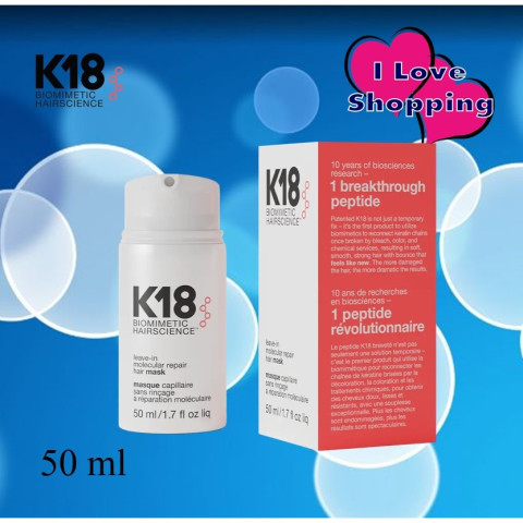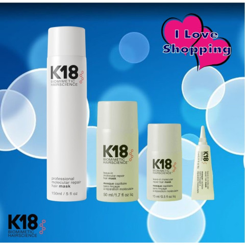 K18 Leave-In Molecular Repair Hair Mask มาส์กทรีทเม้นต์แบบไม่ต้องล้างออก ขนาด 150 ml สำหรับผมทุกประเภท ช่วยฟื้นฟูความเสียหายของเส้นผมอย่างเห็นผลภายใน 4 นาที ด้วยเทคโนโลยีเปปไทด์ที่ได้รับการจดสิทธิบัตร ออกแบบมาเพื่อซ่อมแซมผมที่ผ่านการฟอกสี ทำสี ดัด-ยืด เคมี และความร้อน ให้เส้นผมกลับมาแข็งแรง นุ่มลื่น เรียบเงา และมีวอลลุ่มเด้งดูสุขภาพดี