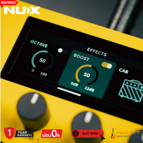 Effects: Octave, Booster, Amp Simulation, Reverb (สำหรับกลองหรือไมค์/อินพุต 1)