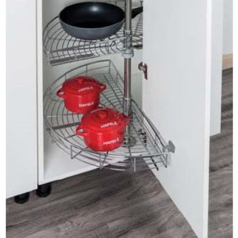 Hafele 495.37.030 / 495.37.032 ตะแกรงครึ่งวงกลม ชุดตะแกรงเข้ามุม 180° ช่วยเปลี่ยน “มุมอับ” ในตู้เข้ามุมให้กลายเป็นพื้นที่จัดเก็บที่หยิบใช้งานง่าย เหมาะสำหรับจัดระเบียบเครื่องครัว จาน ชาม เครื่องปรุง หรืออุปกรณ์ทำอาหารต่างๆ ให้เป็นสัดส่วน เพิ่มความเป็นระเบียบและความสวยงามให้ชุดครัวอย่างลงตัว