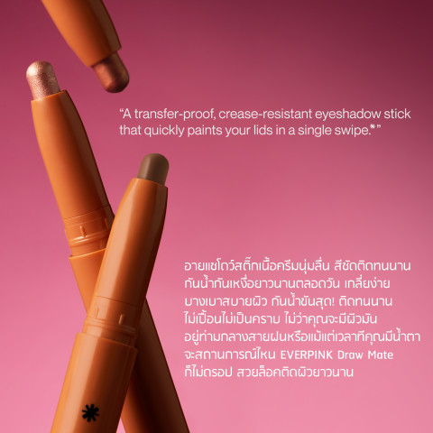 [GWP ห้ามกดซื้อ] EVERPINK Draw Mate เอฟเวอร์พิงค์ ดรอว์ เมท อายแชโดว์ สติ๊ก อายแชโดว์สติ๊กเนื้อครีมนุ่มลื่น สีชัดแน่น เกลี่ยง่ายในไม่กี่วินาที พร้อมคุณสมบัติกันน้ำกันเหงื่อและติดทนนาน ช่วยให้เมคอัพตาอยู่ครบตลอดวันแม้ผิวมัน หน้าฝน หรือวันที่มีน้ำตา เนื้อสัมผัสสบายผิว ไม่ตกร่อง (crease-resistant) และไม่เลอะเป็นคราบ (transfer-proof) ให้ได้ทั้งลุคคมชัดหรือฟุ้งละมุนตามต้องการ