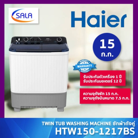 HAIER เครื่องซักผ้า 2 ถัง ขนาด 15 กก. รุ่น HTW150-1217BS ตัวช่วยงานซักที่จุใจ เหมาะทั้งครอบครัวใหญ่และบ้านที่ซักผ้าบ่อย ซักและปั่นหมาดแยกถัง ทำงานคล่อง ประหยัดเวลา พร้อมฟังก์ชันแช่ผ้าและล้างคราบตกค้าง เพื่อผ้าที่สะอาดมั่นใจทุกครั้งที่ซัก
