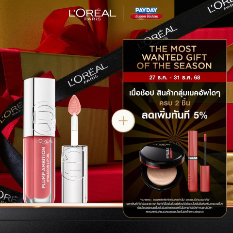 ลอรีอัล ปารีส พลัมพ์ แอมบิชั่น (L’OREAL PARIS Plump Ambition) ลิปออยล์เพิ่มวอลลุ่มที่ช่วยให้ริมฝีปากดูอวบอิ่มขึ้นทันที พร้อมมอบความชุ่มชื้นยาวนานถึง 24 ชั่วโมง และฟินิชแวววาวฉ่ำวาวราวกระจกในปาดเดียว เหมาะสำหรับทุกสภาพริมฝีปาก ไม่ว่าจะปากแห้ง ขาดน้ำ หรืออยากได้ลุคฉ่ำสุขภาพดีแบบดูแพง