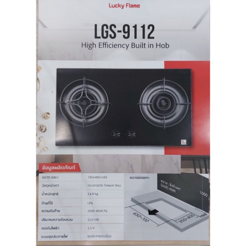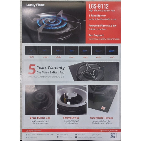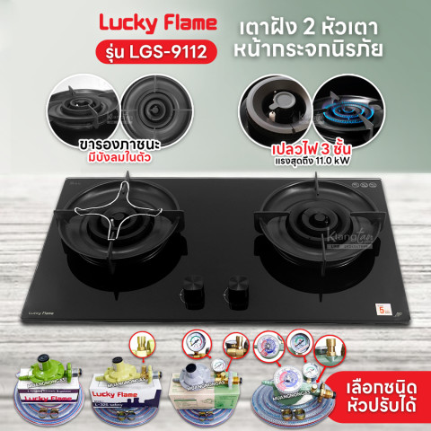 LUCKY FLAME เตาฝัง รุ่น LGS-9112 (รุ่นใหม่) เตาฝังดีไซน์ทันสมัย หน้ากระจกนิรภัย Temper สวยหรู ทำความสะอาดง่าย พร้อมหัวเตาไฟแรงแบบ แปลวไฟ 3 ชั้น ให้ความร้อนสม่ำเสมอ ตอบโจทย์ทั้งผัดเร็ว ต้มเดือดไว และเคี่ยวไฟอ่อนอย่างแม่นยำ เหมาะสำหรับครัวบ้านและครัวคอนโดที่ต้องการทั้งความสวยและความปลอดภัยในเครื่องเดียว