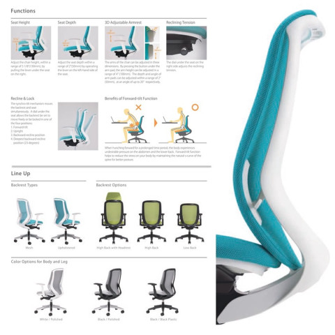 Forward-Tilt Function ปรับเอนโน้มหน้าได้ถึง 10 องศา เหมาะมากกับงานที่ต้องโฟกัส เช่น อ่าน/เขียน/พิมพ์งานต่อเนื่อง