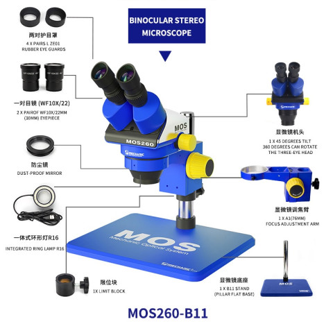สัมผัสประสบการณ์การซ่อมโทรศัพท์มือถือระดับมืออาชีพด้วย Mechanic กล้องจุลทรรศน์สเตอริโอ MOS260 / MOS300 6-45X HD กล้องจุลทรรศน์สเตอริโอแบบ Trinocular / กล้องส่องทางไกล ที่มาพร้อมฐานขนาดใหญ่ แข็งแรง เหมาะสำหรับงานซ่อมที่ต้องการความละเอียดและความแม่นยำสูง ทั้งการบัดกรีชิพขนาดเล็ก การตรวจสอบบอร์ด และงานอิเล็กทรอนิกส์ทุกรูปแบบ