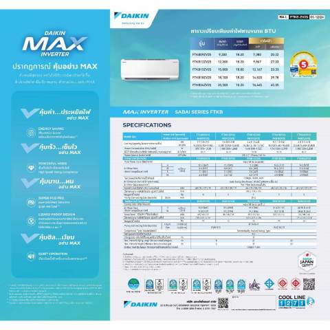 แอร์ไดกิ้น SABAI Inverter Series รุ่น FTKB-AV2S ขนาด 9,200 BTU รุ่นปี 2026 เครื่องเดียวครบทั้งความเย็นสบาย ประหยัดไฟ ทนทาน ดูแลง่าย เหมาะอย่างยิ่งสำหรับผู้ที่ต้องการเครื่องปรับอากาศคุณภาพญี่ปุ่น ในราคาคุ้มค่า ใช้งานได้ยาวนานพร้อมการรับประกันจากโรงงานโดยตรง