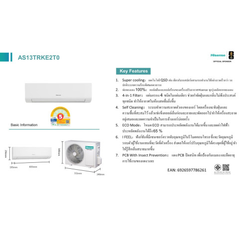 เลือก HISENSE AIR CONDITIONER รุ่น AS13TRKE2T0 / AS18TRKE2T เพื่อสัมผัสความเย็นสบาย เงียบ ประหยัดพลังงาน และคุ้มค่า ทั้งในด้านคุณภาพและการใช้งานระยะยาว