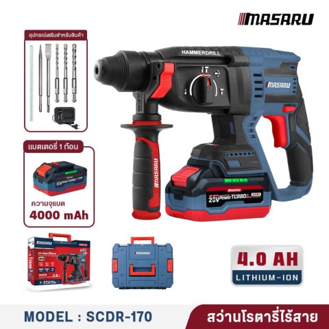 บล็อคไร้สายแรงบิดสูง ใช้สำหรับขัน–คลายน็อตและสกรู เหมาะกับงานยานยนต์ งานโครงสร้าง และงานติดตั้ง มีระบบปรับความเร็วรอบ พร้อมไฟ LED ช่วยส่องสว่างพื้นที่ทำงาน ให้คุณทำงานได้แม้ในที่แสงน้อยSCDR-170 สว่านโรตารี่ไร้สาย 20V