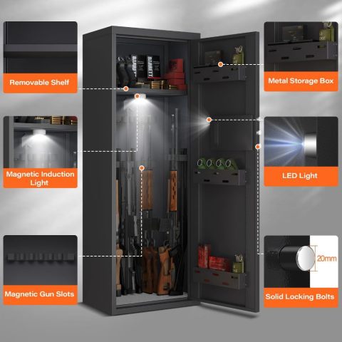 เก็บปืนยาวได้ 10–12 กระบอก พร้อมพื้นที่สำหรับปืนสั้นและกระสุน