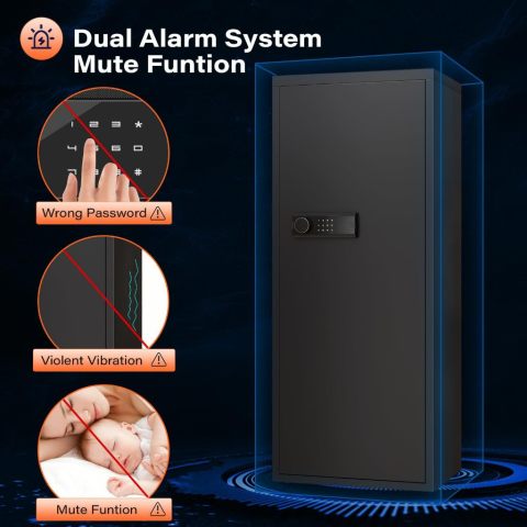 ดีไซน์ตู้ขนาดใหญ่แบบตั้งพื้น รองรับปืนยาวได้ 10–12 กระบอก ภายในมีชั้นลอยสำหรับวางกระสุนและอุปกรณ์เสริมต่าง ๆ ช่วยจัดเก็บได้อย่างเป็นสัดส่วน ตัวตู้ผลิตจากวัสดุเหล็กแข็งแรง ทนทาน น้ำหนักมาก ช่วยป้องกันการงัดแงะ พร้อมระบบยึดติดพื้นหรือติดผนังได้ เพิ่มความปลอดภัยมากยิ่งขึ้น