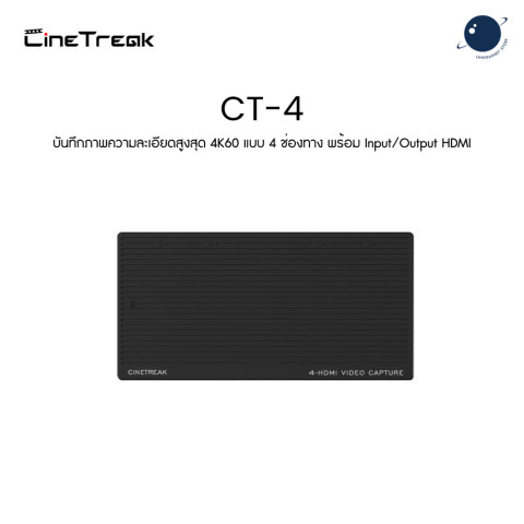 CINETREAK CT-4 4-Channel HDMI HD Video Capture Card คือโซลูชันสำหรับงานไลฟ์และสตูดิโอระดับมืออาชีพ ที่ต้องการสลับภาพหลายกล้องแบบเรียลไทม์ มาพร้อม HDMI 4 ช่อง รองรับทั้งการทำ Live Streaming, บันทึกวิดีโอ, งานสอนออนไลน์ ไปจนถึงงานถ่ายทอดสดงานอีเวนต์ได้อย่างลื่นไหลในตัวเดียว