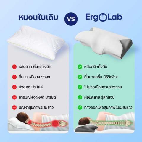 [ส่งฟรี] หมอน ErgoLab Deep Sleep | ขจัดอาการปวดคอและเปลี่ยนชีวิตการนอนด้วยการนอนหลับลึกขึ้น (ประกันคืนเงินใน 90 วัน) ราคาเพียง 2,490 บาท