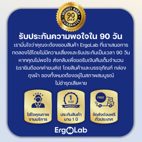 ทดลองนอนกับหมอน ErgoLab Deep Sleep ได้ยาวๆ หากคุณรู้สึกว่าไม่ใช่สำหรับคุณ ภายใน 90 วัน สามารถขอคืนเงินได้ โดยสินค้าและกล่องบรรจุภัณฑ์ต้องอยู่ในสภาพสมบูรณ์ ไม่ชำรุดเสียหาย
