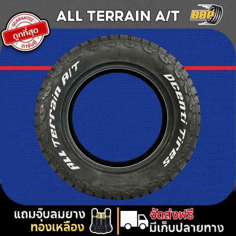 ยกระดับทุกเส้นทางการขับขี่ของคุณด้วย DCENTI 265/65R17 รุ่น All Terrain A/T ยางออฟโรดสมรรถนะสูงที่ออกแบบมาเพื่อรองรับทั้งการใช้งานในเมืองและการลุยทางทุรกันดารอย่างมั่นใจ มาพร้อมลายตัวหนังสือดำ–ขาวสะดุดตา ช่วยเพิ่มความดุดันให้กับล้อและสไตล์รถของคุณในทันที